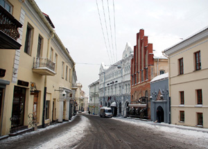 Fantastyczną panoramę Senamiestyje – Starówki roztaczającą się z pokrytego kilkunastocentymetrową warstwą śnieżnego puchu tarasu mojego pokoju na najwyższym od ulicy piętrze tego hotelu zobaczyć mogłem jednak dopiero następnego dnia. Do Wilna przyjechaliśmy bowiem już po zmroku.