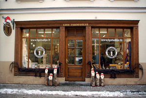 Zdążyłem jeszcze dojść na plac Katedralny i obejrzeć ogromną, ładnie oświetloną choinkę, a także z zewnątrz katedrę oraz jej dzwonnicę – dawną wieżę obronną miasta. I już trzeba było wracać, aby zdążyć na kolację oficjalnie rozpoczynającą nasz krótki program pobytu na Litwie. W restauracji „Lokys”, czyli Niedźwiedź, w sercu Starówki przy ul. Stiklių, serwującej dania kuchni narodowej.