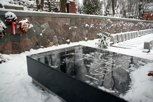 Na pokrytym wieńcami i kwiatami oraz przysypanym śniegiem grobie Matki i serca Syna (Marii z Billewiczów Piłsudskiej i Józefa Piłsudskiego) nie ma już śladów niedawnego aktu wandalizmu. Ale aby móc sfotografować napis na czarnej marmurowej płycie musieliśmy usunąć z niej śnieg. Później było szybkie zwiedzanie tej historycznej nekropolii i szybki przejazd do odległej o 28 km dawnej stolicy W. Ks. Litewskiego –Trok.