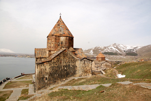 Przy okazji wspomnę, że ceny żywności są tu podobne do polskich, trunków niższe. W kolejnym dniu podróży zdołaliśmy zobaczyć kawał jeziora Sewan oraz zwiedzić stojący na wrzynającym się w nie półwyspie (w przeszłości był on także wyspą), klasztor Sewański z IX w. Jezioro to ma obecnie powierzchnię na wysokości 1960 m i 40 cm n.p.m..