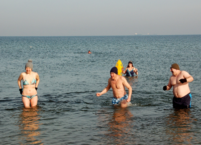 I wrócić na brzeg, szybko się wytrzeć i „wskoczyć” w ciepłe ubranie. Ale nie brakowało również zanurzających się na dłużej, pływających, lub w, nawet większych grupach, ćwiczących w lodowatej wodzie.