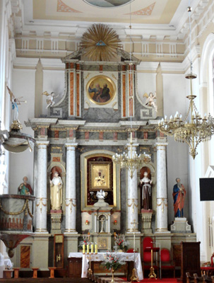 Wzmianka o nim dotyczy dopiero roku 1993, gdy to wydarzenie upamiętniło wmurowanie tablicy. Wcześniej, bo w roku 1843, odbył tu ślub rodziców pisarza. W kościele wartych obejrzenia jest kilka ołtarzy oraz dziel sztuki.