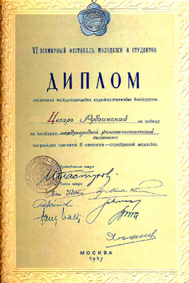 W Moskwie reprezentowałem także młodych polskich filatelistów. Na pierwszej w ZSRR po wojnie, festiwalowej Międzynarodowej Wystawie Filatelistycznej, własnym zbiorem tematycznym „Piękno Polski”, za który otrzymałem srebrny medal i tytuł „Laureata Festiwalu”.