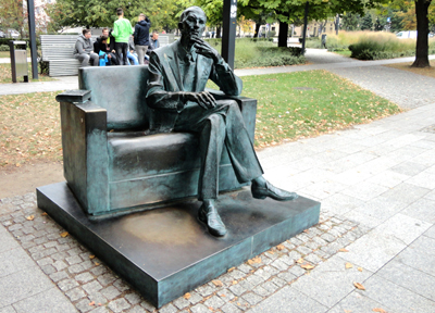 A w pobliżu głównego wejścia do muzeum stanęła odlana w brązie ławeczka z siedzącą na niej postacią Jana Karskiego (1914-2000). Emisariusza polskiego państwa podziemnego, niezwykle zasłużonego w informowaniu świata o dokonywanym przez Niemców na okupowanych ziemiach polskich ludobójstwie – holokauście Żydów.