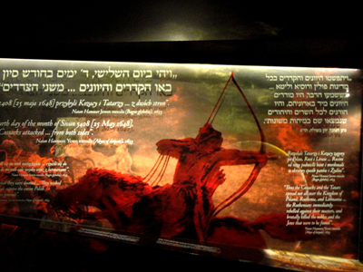 Przedstawionymi w 16 częściach – tematach. Z dramatycznym nie tylko dla Polski, ale także polskich Żydów – śmierć poniosła ich jedna trzecia mieszkająca na kresach wschodnich – powstaniem kozaków Bohdana Chmielnickiego. Za najbardziej efektowną uważana jest, słusznie, galeria Miasteczko. Czyli lata 1648-1772, do I rozbioru Polski.