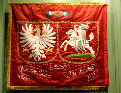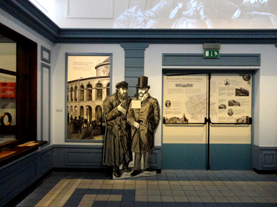Z bardzo ciekawą kopią sztandaru z wyhaftowanymi Orłem Białym i litewsko – białoruską Pogonią oraz tekstem: „Walecznym Braciom poświęcają Polki Izraelitki. Kalisz 1863”. I niezliczonymi innymi eksponatami oraz tekstami prezentującymi żydowskie salony, obrzędy (ślub), oświecenie z nowoczesnymi szkołami – jesziwami.