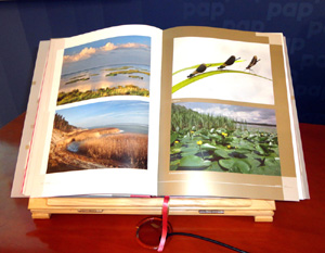 – Po paru latach – powiedział – zdjęcia takie byłyby nieaktualne, szybko zestarzały by się. Chcieliśmy natomiast aby było one ponadczasowe. Oglądając ten album i zdjęcia z niego oraz słuchając dyskusji przypomniało mi się odległe dzieciństwo. W roku 1938 ukazała się ogromna księga, większa i cięższa od prezentowanej przez BOSZ.