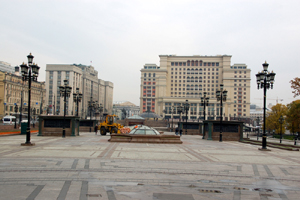 Duże, nowoczesne budowle, które nie pasowałyby do XVIII-XIX wiecznej architektury centrum wzniesiono przede wszystkim na drugim brzegu rzeki, na wysokości Aleksandro – Newskiej Ławry. Skalę przemian w Moskwie porównywałem z dwu perspektyw. Jej panoramę widzianą z Wróblich (w czasach komunistycznych Leninowskich) Wzgórz oraz poszczególnych ulic i placów.