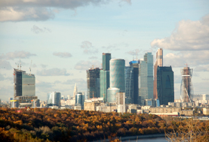 Na lewo, niemal wchodzące w kompleks Mosfilmu nowoczesne wieżowce uważane za najbrzydsze zbudowane w Moskwie dotychczas w XXI wieku. I daleko na północy tutejszy Manhattan. Powiedziawszy skromniej, coś w rodzaju centrum bankowo – biznesowego Singapuru: kompleks różnorodnych wysokościowców.