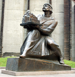 Pomnik ten, wzniesiony przed ponad 30 laty na brzegu rzeki w Parku Nawodnytskim w pobliżu Mostu Pattona – nazwanym tak od nazwiska jego konstruktora i budowniczego, też ma ciekawą historię. Wykonany z betonu pokrytego blachą miedzianą uległ częściowej korozji i zaczął się po prostu sypać, zagrażając bezpieczeństwu ludzi korzystających z tego parku oraz chętnie fotografujących się na jego tle.
