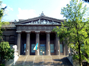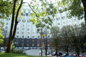 Natomiast w dolnej części ul. Hruszewskiego, gdyż spada ona w tym miejscu dosyć stromo do Placu Europejskiego, od którego zaczyna się Chreszczatyk, stoi kolejny potężny gmach z czasów sowieckich – Rada Ministrów. Poniżej niego zaś, vis a vis stadionu Dynamo, klasycystyczne Narodowe Muzeum Sztuki, wejścia do którego strzegą dwa wielkie, kamienne lwy.