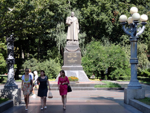Wśród zieleni znajduje się kilka, ładnie w nią wkomponowanych pomników: ukraińskiej pisarki Łesi Ukrainki, legendarnej aktorki Marii Zankowieckiej oraz rosyjskiego kompozytora Michaiła Glinki. W parku tym, na styku z jego północno – zachodnią częścią zwaną Ogrodem Miejskim, stoi zbudowany w połowie XVIII w. według projektu włoskiego architekta, twórcy także cerkwi św. Andrzeja w Kijowie oraz gmachów w Petersburgu, Bartolomea Francesco Rastrellego, późnobarokowy Pałac Mariiński.