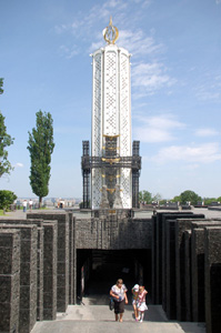 Memoriał Pamięci Ofiar Hołodomoru 1932 – 1933 odsłonięto w 2009 roku w Parku Wiecznej Chwały na naddnieprzańskiej wysokiej skarpie. Wejście do niego od strony ulicy hetmana Iwana Mazepy otwiera brama z dwoma kamiennymi aniołami klęczącymi po bokach. Dalszą drogę wyznaczają kamienne żarna symbolizujące przemielenie milionów ludzi.