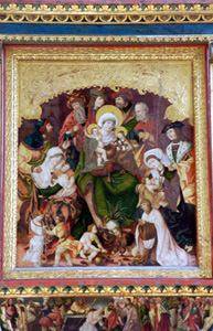 Ponadto drewniane stalle w prezbiterium, po prawej stronie z czterema barwnymi tarczami herbowymi króla Węgier Macieja Korwina, jego żony Beatrycze, księcia Siedmiogrodu, a później króla Polski Stefana Batorego oraz węgierskiego króla Władysława III.