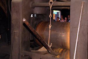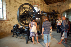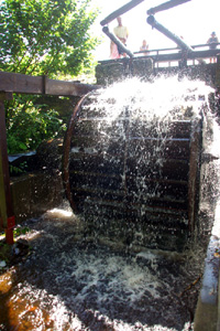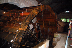 Potężne drewniane koło o średnicy 8 metrów, największe zachowane i nadal działające przy specjalnych okazjach w Europie, powoli rusza pod naporem skierowanego na nie strumienia wody. Obserwujący to ludzie mogą na własne oczy zobaczyć, jak przed 1,5 wiekiem działał główny napęd walcowni i pudlingarni.