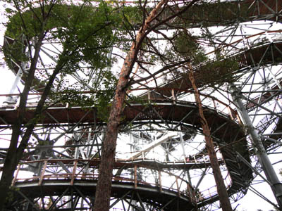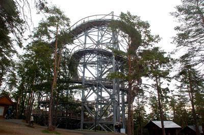 Są również, aktualnie nieczynne, zapewne dlatego, że jest już po szczycie sezonu, wąskie, pionowe kręcone stalowe schody oraz zjeżdżalnie metalowymi rurami. Osobno płatne, chociaż bilety wstępu na wieżę oraz korzystanie z innych usług u jej podnóża, mają i tak ceny zaporowe.