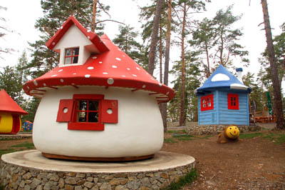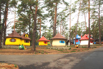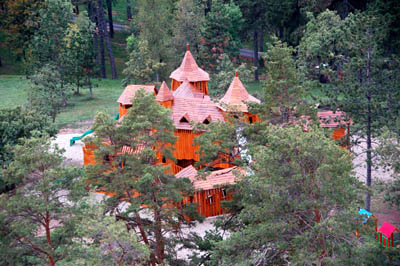 A bliżej budowane bezpośrednio u stóp wieży kempingowe „domki Baby Jagi” w kształcie grzybów oraz drewniany zamek, prawdopodobnie przyszły hotel i – lub restauracja. Gotowa już jest przeszklona od ziemi do dachu kaplica ze szpiczastą wieżyczką zakończoną krzyżem.