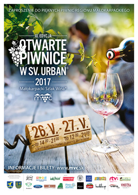 Już po raz jedenasty Słowacja zaprasza na DZIEŃ OTWARTYCH PIWNIC NA ŚW. URBANA ® Najbliższa edycja odbędzie się w dniach 26 – 27 maja 2017 roku. Winne piwnice otwarte będą w piątek w godzinach 14:00 – 21:00 oraz w sobotę w godz. 12:00 – 21:00. Wspólnie z właścicielami winnic przygotowano dla gości ponad 130 starych, urokliwych piwnic, w których można będzie delektować się smakiem szlachetnych, regionalnych win. Bilety wstępu w cenie 40 € (w tym talon o wartości 20 € na zakup win) można rezerwować pod adresem: Zrzeszenie Małokarpacki Szlak Winny – Małokarpacki Ośrodek Oświatowy, Horná 20, Modra, tel.: 00421/33/643 34 89, E-mail: mvc@mvc.sk, www.mvc.sk.