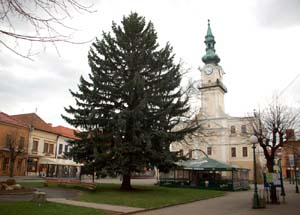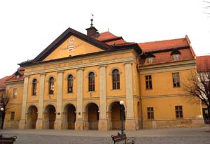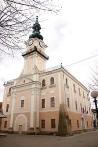 Kilkadziesiąt metrów od obu tych świątyń stoi, już w obrębie dawnych miejskich murów obronnych, ratusz z 1461 roku. Przebudowano go po wielkim pożarze w latach 1541-1555 w stylu renesansowym. W 1641 r. dobudowano do niego wieżę. A odbudowy po kolejnych pożarach w latach 1779 i 1922 – po nim dobudowano drugie piętro, otrzymał on obecny wygląd.