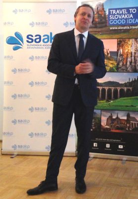 Mnóstwo informacji przedstawił również przedstawiciel SAAKP – Stowarzyszenia Aquaparków wód termalnych i rekreacyjnych, pływalni, kąpielisk naturalnych oraz hoteli wellnes Peter Kolenčík. Są one rozrzucone na terenie niemal całej Słowacji, chociaż najwięcej w jej południowo zachodniej części, co można było obejrzeć na mapie kraju. Bardziej szczegółowo zaprezentowane zostały: Park wodny Bešeňova z 8 basenami z wodą termalną w temperaturach od 27 do 40ºC, 13 z czystą wodą, 13 zjeżdżalniami o łącznej długości 1,5 km, 10 saunami itp.