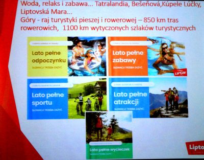 Warto też pomyśleć o wybraniu się, do leżącego w pobliżu granicy z Polską (tylko godzina jazdy od niej) Liptowa. Region Liptov prezentowała Katarína Šarafínová. Jest nie tylko bliski nam terytorialnie, a zarazem jednym z najpiękniejszych w Słowacji, ale także znajdują się tam bardzo popularne ośrodki i parki wodne: Tatralandia, Bešeňová (otwarcie sezonu 22 czerwca), Kúpele Lučký oraz góry ze szczytem Chopok i tamtejsza bacówką. Jest tam 110 km wytyczonych szlaków turystycznych i 850 km rowerowych. Wśród 5 powodów, jakie wymieniono, aby tam przyjechać, poza bliskością granicy, jest łatwość porozumiewania się, gdyż Słowacy rozumieją język polski.