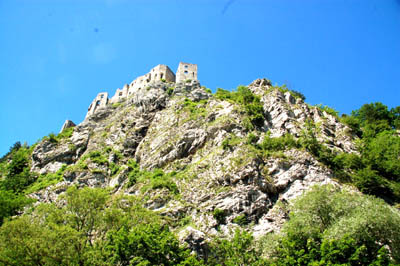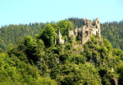 Gdy z poziomu rzeki obserwuję ludzi na jego ruinach, wyłaniających się z, i na jej tle, zieleni lasu pokrywającego zbocza Meandru Domaszyńskiego, mniejszych z tej odległości niż łebki zapałek, zdaję sobie sprawę z dawnej wielkości tego zamku. Rozbudowywany był on przez wiele lat.
