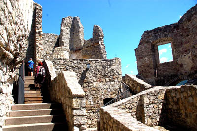 Na szczycie najwyższej wieży jest punkt widokowy na rozległe okolice, z wejściem po 70 schodach. A w jednej z wież głodomoria, w której przetrzymywano skazanych na śmierć głodową. Na temat obu zamków, ich architektury oraz etapów rozbudowy jest sporo publikacji, ale wnikanie w te szczegóły przekracza objętość dziennikarskiej relacji.