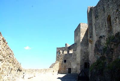 W średnim zamku zachowały się mury wokół dziedzińca oraz znaczne fragmenty baszty armatniej z XV w.