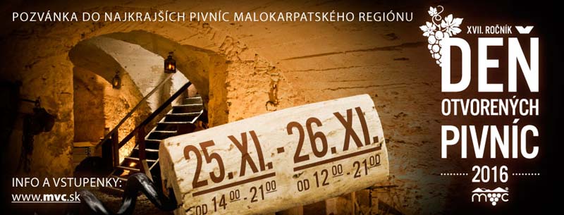 Po raz siedemnasty Słowacja zaprasza gości, także z Polski, na jesienny Małokarpacki Szlak Winny. Wspólnie z właścicielami winnic Organizatorzy Dnia Otwartych Piwnic, który, tradycyjnie, rozciągnie się na dwa dni: 25 i 26 listopada 2016 r. i obejmie tereny winiarskie od Bratysławy aż po Trnavę, przygotowali ponad 150 starych, urokliwych piwnic, w których można będzie delektować się smakiem szlachetnych, regionalnych win.