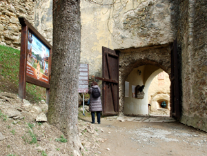 Zamek, którego imponujący widok jest zwłaszcza z lotu ptaka, chociaż taki oglądałem tylko na zdjęciach, ma metrykę od XIII wieku. Na oficjalnej tablicy informacyjnej przy wejściu do niego można przeczytać w kilku językach, w tym po polsku, że zamek ten, jako nadgraniczną warownię, zbudowano w latach 1301-1308.