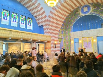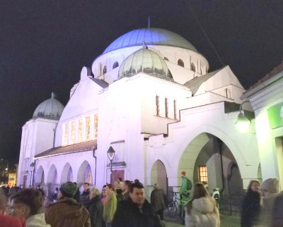 Wielka Synagoga (Ozdobiona modnymi motywami bizantyjskimi i orientalnymi) powstała w 1913 r. według projektu Richarda Schreibnera. Zbudowana dla prężnej społeczności żydowskiej, została zniszczona podczas II wojny światowej i odbudowana w latach 70. XX w. – dziś funkcjonuje jako sala wystawiennicza. Budynek wyróżnia się kopułami i łukami w stylu mauretańskim, dzięki czemu często nazywany bywa „słowackim meczetem”.