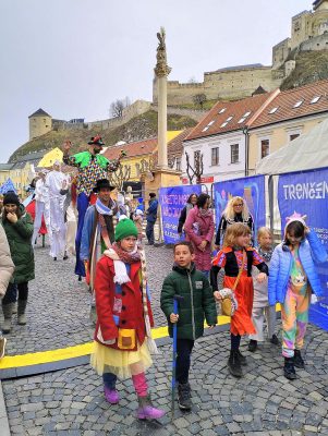 Są tu także tradycyjne wydarzenia miejskie jak Trenčian sky majáles – majowe święto z tradycyjnym podnoszeniem ozdobnego drzewa i imprezami na placu, „Príbehy z Trenčína” – plenerowe prezentacje historii miasta, letnie piątkowe pikniki muzyczne i niedzielne koncerty dla rodzin oraz festiwal folklorystyczny „Pri Trenčianskej bráne” z rzemiosłem i tradycyjną muzyką, a takżeadwentowe jarmarki i wydarzenia bożonarodzeniowe pod zamkiem w grudniu.