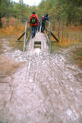 Niestety współczesne ma się nadal doskonale, o czym mogliśmy przekonać się przedzierając przez nie do wytyczonego szlaku, także biegnącego przez drewniane pomosty wbite w bagna.