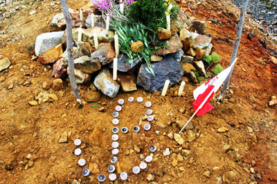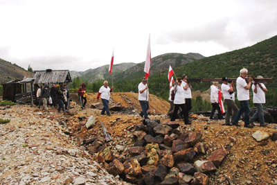 W ten sposób oddaliśmy hołd tam pomordowanym. Spełniliśmy ich życzenie! A gdy dojechaliśmy do „naszego” łagru przez bezdroża i wezbrane potoki, rozpoczęliśmy jego zwiedzanie. Po 3 godzinach chodzenia udało się nam zobaczyć tylko jego połowę. Jest ogromny. Nie da się go opisać w kilku słowach. Pracowało tutaj około 10 tysięcy łagierników. Chodząc po nim odnosi się wrażenie, że więźniowie właśnie go opuścili.Tylko zawalone szyby w zboczu góry, spalony zakład kruszenia i wytopu rudy oraz zrujnowane baraki mieszkalne, temu zaprzeczają. Tam też w pobliżu, powalonych czasem i brutalną pogodą barakach, spędziliśmy noc pod namiotami. Była to noc pełna obaw, szczególnie dla mnie po tym, co nam powiedziała rosyjska obsługa.