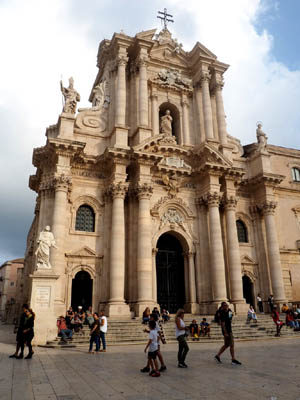 Chrześcijańską katedrę w tym miejscu zbudowano w VII wieku. Jako podstawę kościoła wykorzystano istniejącą w tym miejscu już od dwunastu stuleci świątynię Ateny z V wieku p.n.e. Ufundował ją Gelon, tyran Syrakuz, po zwycięstwie nad Kartaginą pod Himerą.
