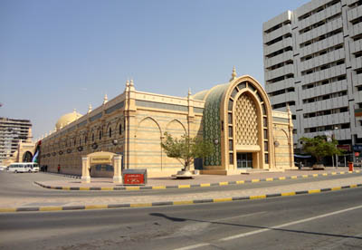 Stojącego przy nabrzeżu – Al Corniche Road – kanału Sharjah Creek, łączącego Zatokę Perską, tu nazywaną Arabską, z Laguną Chalida (Khalid Lagoon), w najstarszej, historycznej części miasta Szardża. Ten dosyć wysoki piętrowy budynek ma podłużny, na całej jego imponującej długości, szeroki korytarz na parterze.