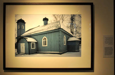Drewnianego, z II połowy XVIII w., o ciemno zielonych ścianach i wieżach – minaretach oraz dachach, także nad wejściami, pokrytych egzotycznym tu śniegiem. Stanowi ona jedną z ilustracji dużego cyklu zdjęć i modeli muzułmańskich świątyń, od tej najważniejszej, Ka’aby w Mekce.
