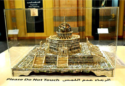 Stare, z początków tej religii, egzemplarze Koranu w przepięknie zdobionych okładkach i skrzynkach. Dywaniki modlitewne oraz dywany, którymi wykładane są posadzki meczetów. Niektóre, haftowane złotem i srebrem, wspaniale wyeksponowane. Np. z ich odbiciem w lustrach podwieszonych nad nimi.