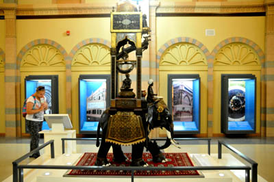 Poza modelami meczetów, wśród nich także pokrytego masą perłową, i innych budowli islamu, w korytarzu tym można oglądać niektóre rozwiązania techniczne. A także przyciągający szczególną uwagę, blisko 4 – metrowej wysokości indyjski zegar – rzeźbę słonia niosącego na grzbiecie jego poganiacza i wieżę.