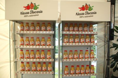 „Nasza Tłocznia” organizuje bowiem także wycieczki edukacyjne po sadzie, z pokazami tłoczenia soku, zrywaniem jabłek, ogniskami oraz atrakcjami dla dzieci. W pawilonie degustacyjnym jest długa lada z urządzeniami do nalewania soków bezpośrednio z większych pojemników, prezentacją butelek z różnymi ich rodzajami. Są także oszklone szafy chłodnicze z podstawowym tutejszym produktem, sokiem z jabłek. Ale on stanowi tylko jeden z wytłaczanych tu ich rodzajów. W programie degustacji jest ich sześć. Tłoczone: sok jabłkowy, sok jabłkowy czerwonomiąższowy i z imbiru.