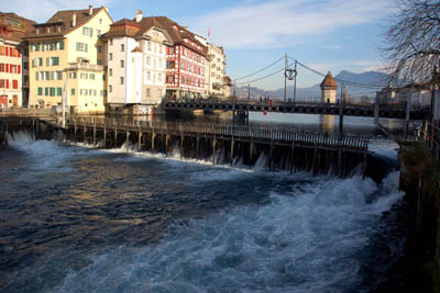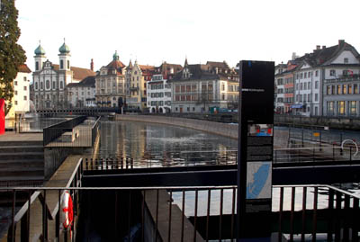 Obie te części Starówki łączą także dwa współczesne mosty dla pieszych i rowerzystów: Ratuszowy – Rathausbrücke i Reussbrücke – przez rzekę Reuss, w miejscu jej wypływania z jeziora. A jakieś 150 m dalej na zachód stoi drugi historyczny, z 1408 r., drewniany Most Młyński – Spreuerbrücke.