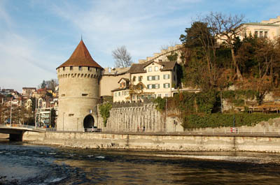 Przez jego podcienia wchodzi się na most. W przeszłości – po raz pierwszy wspomnianą w źródłach w 1297 r. – sąsiadował z Bramą Bazylejską (Niedertor), wyjazdową w kierunku Bazylei. A także placówką celną.