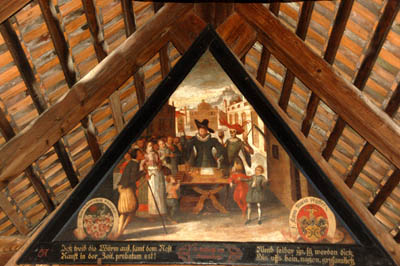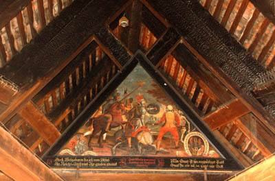 W wiązaniach jego dachu znajduje się około 100 trójkątnych, dostosowanych kształtem do belek dachowych, replik obrazów z początku XVII w. Przedstawiają one sceny z dziejów miasta i Szwajcarii oraz życia patronów Lucerny: św. św. Leodegara i Maurycego.
