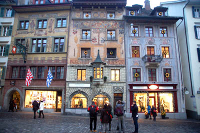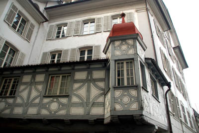 Z budowli, poza wspomnianymi domami, zwłaszcza Stary Ratusz, który w przeszłości był składem zboża. Kolumny i figury na nich. A także kościół p.w. Św. Piotra (St-Peterkirche) w pobliżu północnego wyjścia z Kapellbrücke.