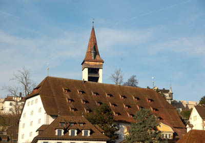 Natomiast wzniesiony w latach 1666-1677 r. niemal na samym brzegu kościół jezuitów był pierwszym w Szwajcarii zbudowanym w stylu określanym tu jako jezuicki. Po wieloletniej renowacji dachu i fasady, obecnie trwa odnawianie w nim malowideł ściennych i stropowych, kaplic, okien oraz konserwacja ołtarzy i ambony.