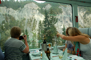 Ponad 7 godzin jazdy w wagonie z szybami panoramicznymi – i fantastycznymi widokami, obiadem „na pokładzie” podawanym pasażerom na miejsca, przy których siedzą i innymi atrakcjami.