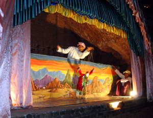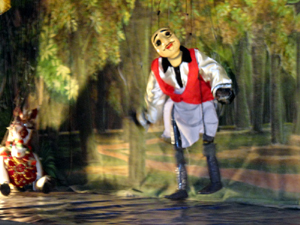 Marionetki były duże, niektóre blisko metrowe. Odgrywane sceny typowe: historyjki o biednych i bogatych, mądrych i głupich, dobrych i złych. Oprócz postaci ludzi, uczestniczyły w nich także kukiełki koni. Czterech pociągających za linki artystów zwijało się w ukropie. W spektaklu występowało bowiem kilkadziesiąt marionetek zmieniających się jak w kalejdoskopie. Pod koniec ich animatorzy przestali ukrywać się za zasłoną.