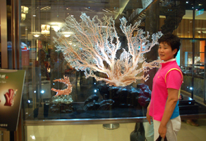 Dużych rozmiarów, pięknie wykonane dzieła jubilerskie z pomarańczowo – różowego koralowca. Zwłaszcza siedzący i śmiejący się Budda, oraz nieco mniejszy od niego smok. Oprócz tego inne precjoza z różnobarwnych, w tym o bardzo rzadkich odcieni korali, nowoczesne rzeźby w kamieniach półszlachetnych, biżuteria z kryształów itp. Najrzadsze okazy są tylko do podziwiania. Z możliwością zrobienia sobie na ich tle zdjęć, z czego korzysta wiele osób.