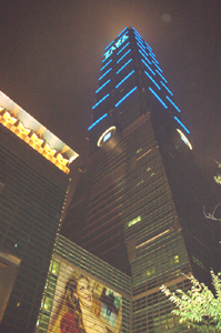 Ale setki innych oraz dzieła sztuki jubilerskiej i biżuteria oczywiście do kupienia. Chociaż, jak się wydaje, po cenach adekwatnych do wysokości na której są one sprzedawane. Gdy zjeżdżam na dół i wychodzę na ulicę, jest już ciemno. Z lekkiej mgiełki wyłania się, wielobarwnie oświetlona, wieża najsłynniejszej budowli Tajwanu. Dookoła niej panuje wielkomiejski ruch najbardziej luksusowej dzielnicy stolicy. Jest przecież sobotni wieczór…