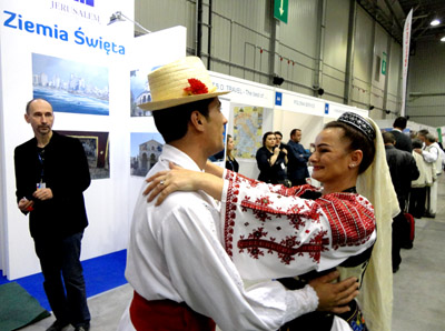 Rumuńscy goście przedstawiają nie tylko swoje turystyczne atrakcje oraz bogatą i różnorodną ofertę w tym zakresie. Przywieźli również dosyć liczny ludowy zespół taneczno – muzyczny występujący na estradzie i przejściu koło stoiska.